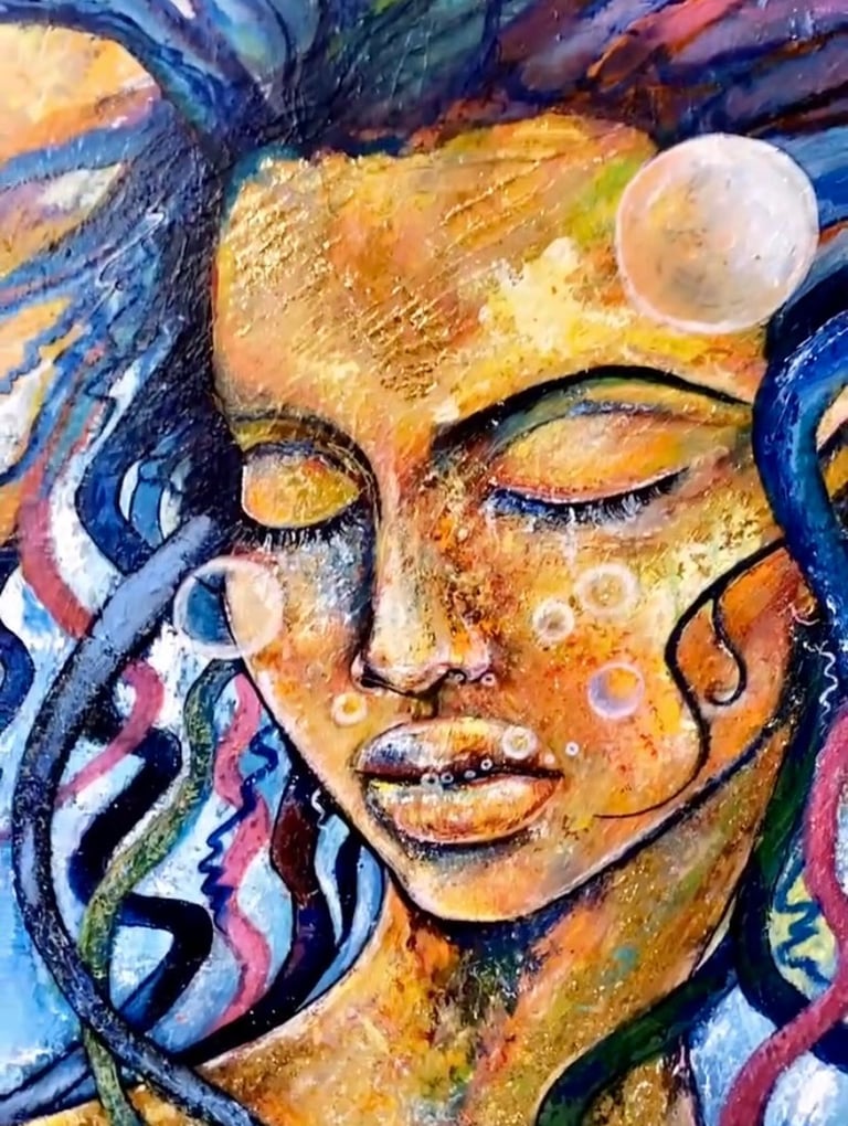 She utilizes a vast amount of colors to create mixed moods of vibrancy with an undertone of melancholy. Teeka’s paintings depict her interpretation of faces through an impressionistic lens, as her selection of colors accentuates the depth and natural flow of her work.